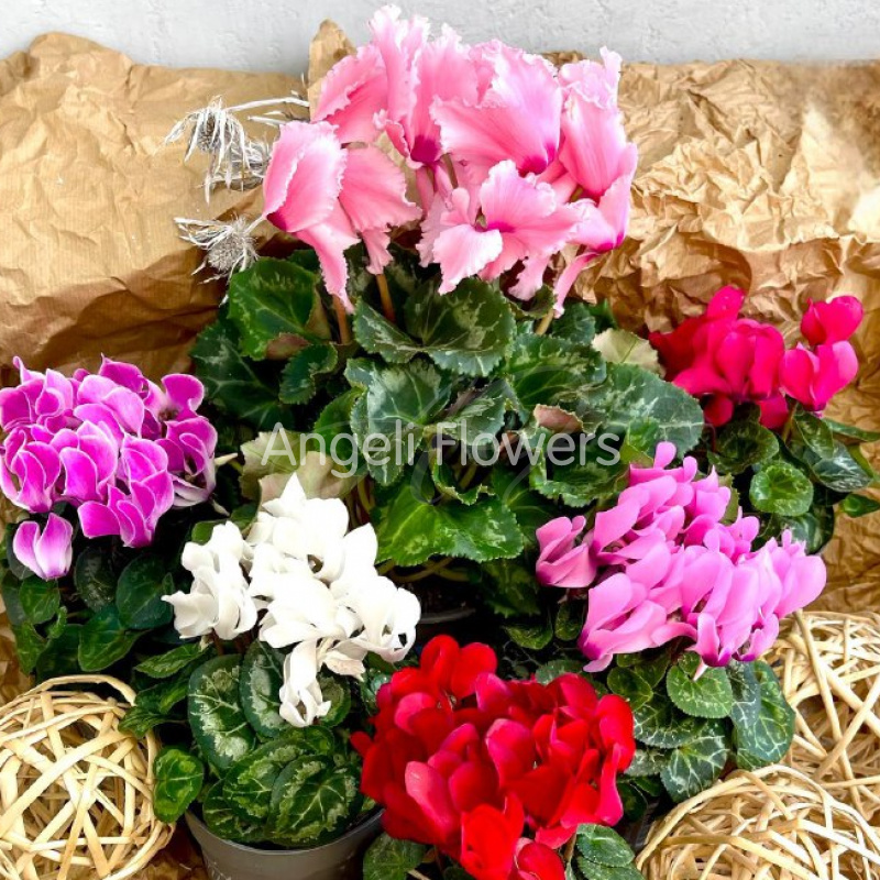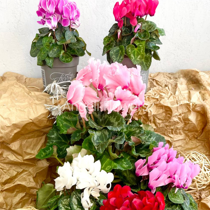 Добавьте ярких красок в ваш дом с Цикламеном Фьюжн — роскошным цветком в насыщенных оттенках. Его необычное сочетание цветов создаст уютную и праздничную атмосферу в любом интерьере. Идеальный подарок или украшение для тех, кто ценит изящество и свежесть природы.