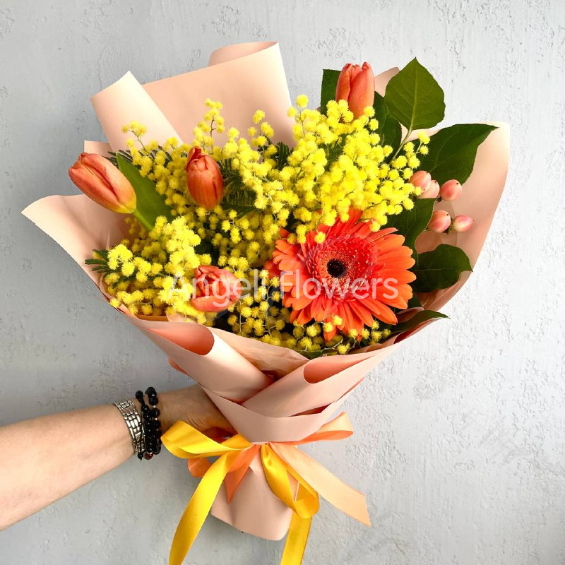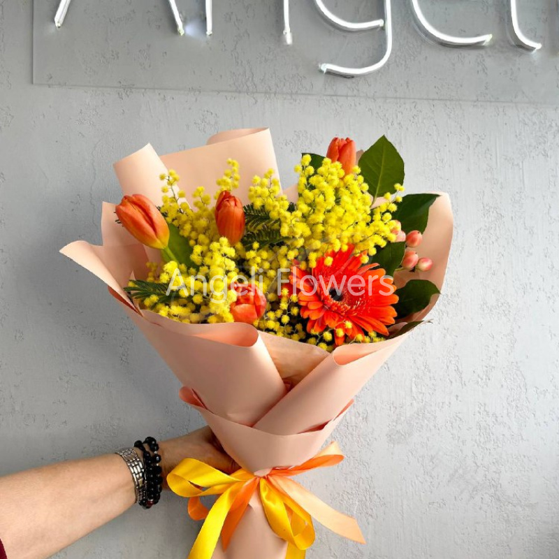 Букет «Весенний калейдоскоп» — это яркое сочетание свежих цветов, вызывающее радость и бодрость. В его состав входят салал, гиперикум, тюльпан, гербера и мимоза, создавая гармоничный и насыщенный букет. Такой подарок подчеркнет особое настроение и добавит весеннего настроения в любой дом. Идеально подойдет для поздравления и выражения теплых чувств.